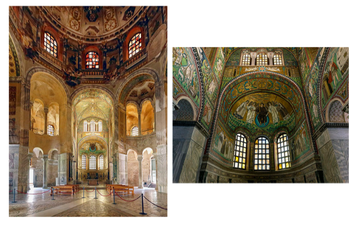 CONNECTION TO READINGS One of this week's readings was "Style and Meaning in the Imperial Panels at San Vitale" by Sarah Basset. This was an analytic paper that dove in depth about the mosaic tile panels present in the San Vitale Basilica in Ravenna, Italy. Not only is this piece connected to the reading, by literally being about the piece itself, the reading describes many of the same things that would be noted on and described in our object annotations. Basset analyzes these panels, what she calls two of Byzantine's "most familiar images" in great detail, not just in their direct imagery, but in what the small details symbolize, such as usage of certain colors.