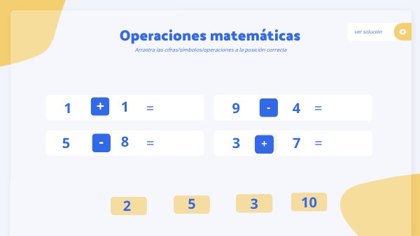 Arrastra las cifras/símbolos/operaciones a la posición correcta
