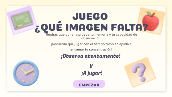 Tendrás que poner a prueba tu memoria y tu capacidad de observación. ¡Recuerda que jugar con el tiempo también ayuda a entrenar tu concentración!