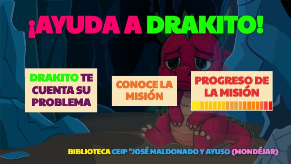 ¡drakito te necesita! su fuego nace con las lecturas de la biblioteca. tras el verano, sin ver a nadie leyendo... su fuego ha desaparecido.