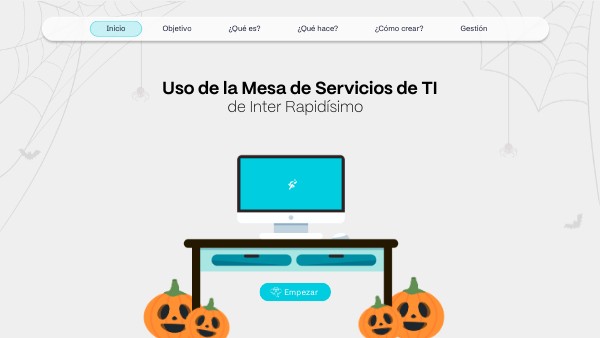 La Mesa de Servicios (o Service Desk) es tu aliado tecnológico en Inter Rapidísimo. Está para ayudarte con cualquier tema relacionado con la tecnología: desde reportar un incidente hasta solicitar apoyo técnico.