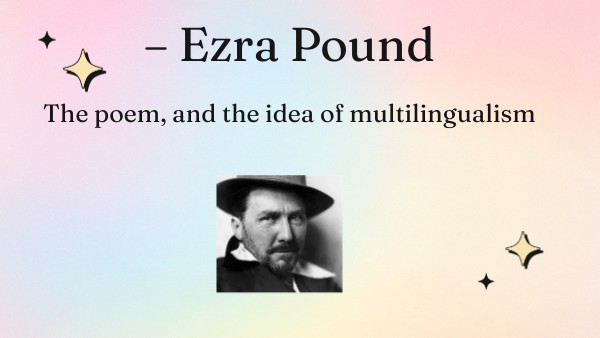 Multilingualism shows his belief that languages preserve the world’s moral and artistic traditions. Melopoeia = the musical power of words: how sound moves feeling beyond literal sense.