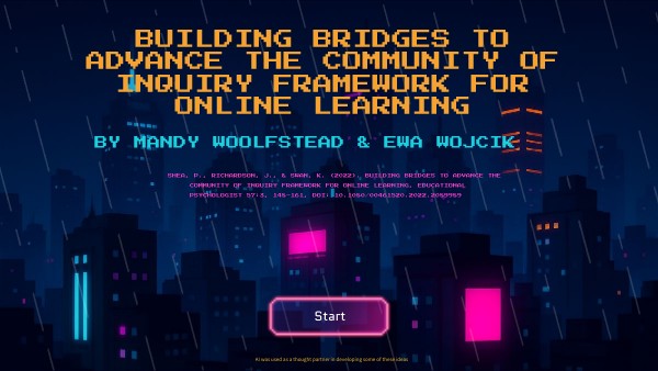 Shea, P., Richardson, J., & Swan, K. (2022). Building bridges to advance the community of inquiry framework for online learning, Educational Psychologist 57:3, 148-161, DOI: 10.1080/00461520.2022.2089989