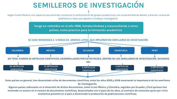 se hace referencia a 5 pAíSES DE AMERICA LATINA, QUE IMPLEMENTAN SEMILLEROS DE INVESTIGACIÓN