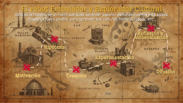 Esta es la historia de un robot que quiso aprender español visitando cuantos más países hispanos fuera posible, para aprender sus culturas, historia, legado, etc.