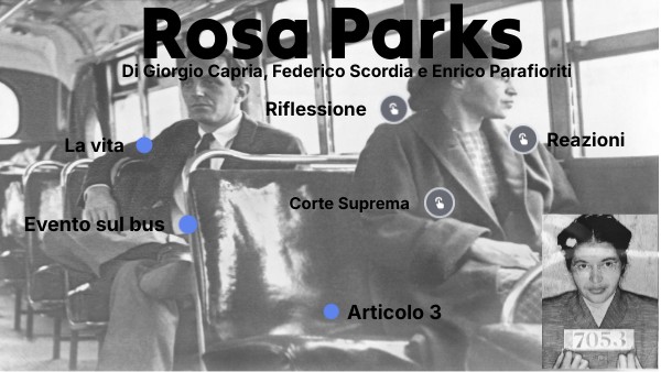 Secondo noi Rosa Parks ha fatto bene a non lasciare il posto all' uomo bianco che voleva che si alzasse perchè così diede l'esempio a tutti i neri che bisogna combattere contro le cose ingiuste. infatti troviamo inaccettabile che in america, e non solo, nel 1955 c'erano ancora discriminazioni, anche tuttora ci sono discriminazioni non solo razziali ma anche sul sesso, lingua, religione, opinioni politiche e molto altro. Federico Scordia