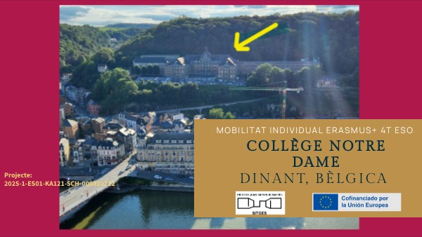 Institut soci: Collège Notre Dame Institut catòlic, similar al nostre en ensenyaments, de 12-18 anys, 1.200 alumnes. Especialitats: Social, Científic, Humanístic i Artístic (enfocat a la música) Idioma: francès Ciutat: Dinant, regió valona de Bèlgica 13.000 habitants, ciutat compacta