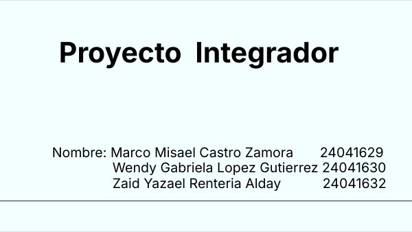 Nombre: Marco Misael Castro Zamora 24041629 Wendy Gabriela Lopez Gutierrez 24041630 Zaid Yazael Renteria Alday 24041632