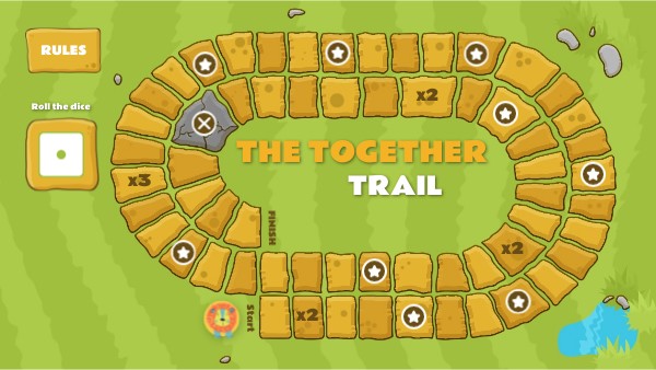 - Work your way to the finish line by showing teamwork, kindness, and problem-solving!