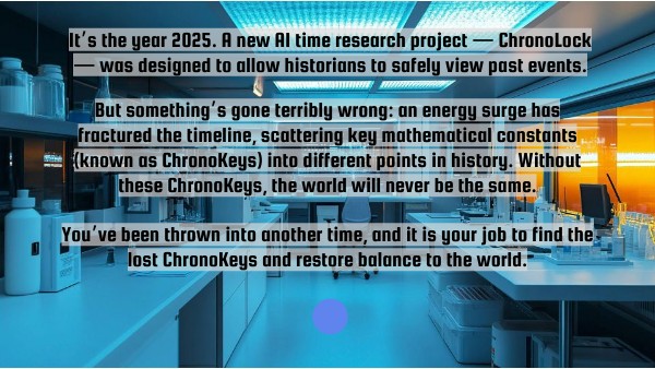 Oh no! The lab is malfunctioning! Your ChronoLock console overloads, scattering ChronoKeys through time.