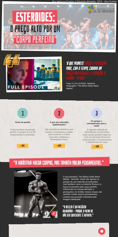 O documentário visualizado aponta os perigos do uso de anabolizantes e esteróides.