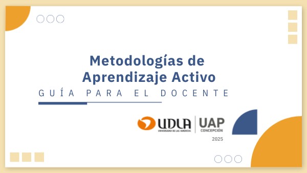Estimada y estimado docente:Esta Guía Práctica, elaborada por la Unidad de Apoyo Pedagógico (UAP) de UDLA sede Concepción, tiene como propósito orientarte en el diseño e implementación de actividades de aprendizaje activo en tus clases. Queremos ofrecerte estrategias concretas y ejemplos aplicables a tu disciplina, para fortalecer la participación, la reflexión y la colaboración de tus estudiantes, en coherencia con el Modelo Educativo UDLA y el compromiso institucional con la mejora continua de la docencia.