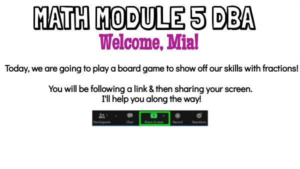 Today, we are going to play a board game to show off our skills with fractions! You will be following a link & then sharing your screen. I'll help you along the way!