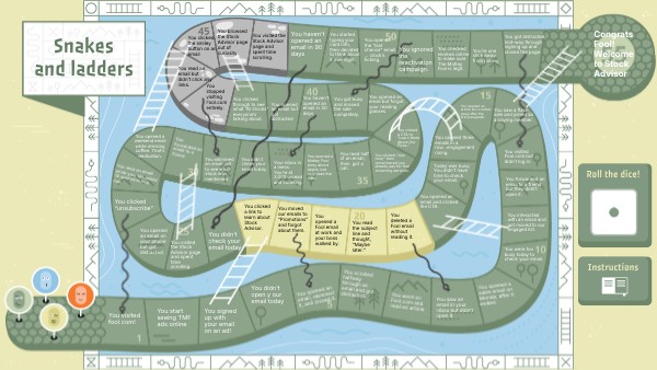 If the player lands on a square where the tail of a snake starts, they go down to a lower square where the headis located.