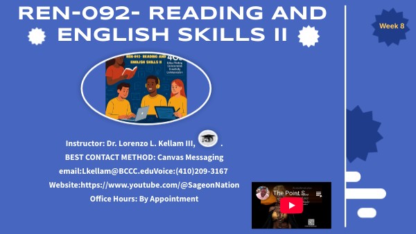 Instructor: Dr. Lorenzo L. Kellam III, .BEST CONTACT METHOD: Canvas Messaging email:Lkellam@BCCC.eduVoice:(410)209-3167 Website:https://www.youtube.com/@SageonNation Office Hours: By Appointment