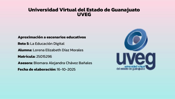 Aproximación a escenarios educativosReto 5: La Educación Digital Alumna: Lorena Elizabeth Díaz MoralesMatrícula: 25015296 Asesora: Biomara Alejandra Chávez Bañales Fecha de elaboración: 16-10-2025