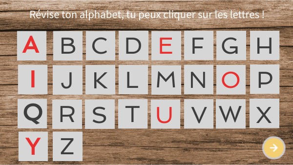 Révise ton alphabet, tu peux cliquer sur les lettres !
