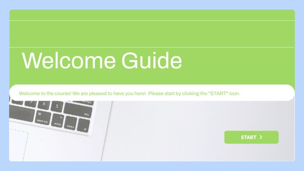 Welcome to the course! We are pleased to have you here! Please start by clicking the "START" icon.