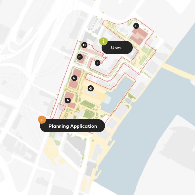 Over four hectares of new and enhanced public realm will transform the site into a connected network of green spaces, squares and walkable streets. The dockside areas and civic square will form a distinctive waterfront setting for relaxation, play and community events, celebrating Belfast’s maritime heritage. This is discussed in more detail in the Connected Community panel.