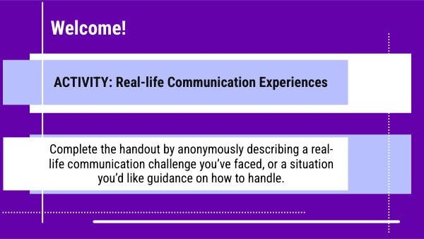 Complete the handout by anonymously describing a real-life communication challenge you’ve faced, or a situation you’d like guidance on how to handle.