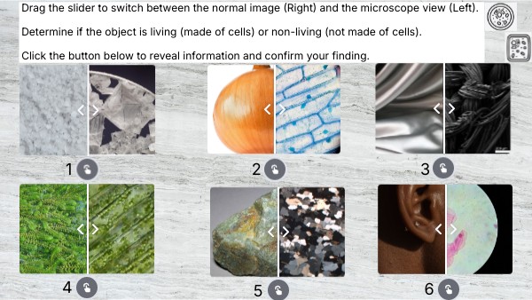 Cheek cells are tiny cells from the inside of your mouth. Under a microscope, they look like irregular, flat, and slightly rounded shapes with a clearly visible nucleus in the center. The edges are thin, and the cells often appear in loose clusters. Cheek cells are composed of cells and are considered to be living.