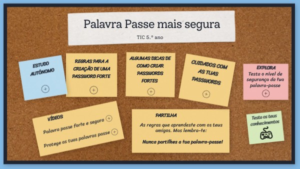 As palavras-passe protegem os teus dados de acessos indevidos. Para estares mais seguro de que és o único a ter acesso aos teus dados, este recurso ensina-te a criar palavras-passe seguras.