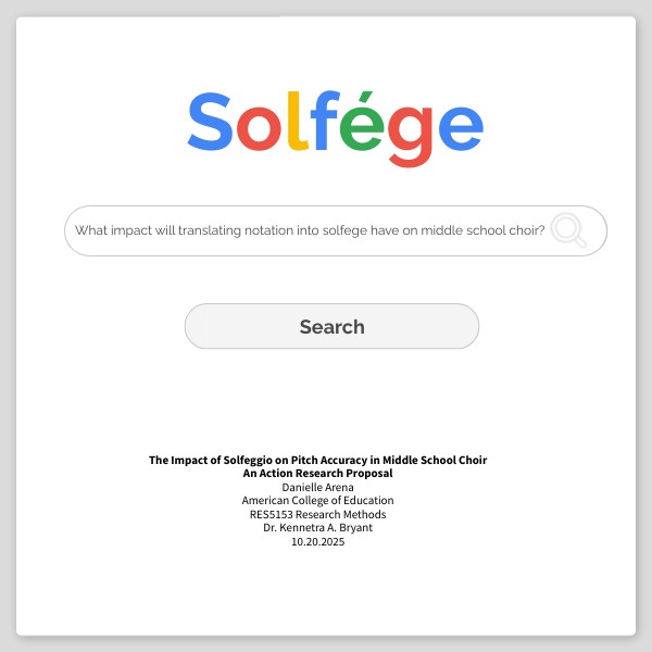 The Impact of Solfeggio on Pitch Accuracy in Middle School Choir An Action Research Proposal Danielle Arena American College of Education RES5153 Research Methods Dr. Kennetra A. Bryant 10.20.2025
