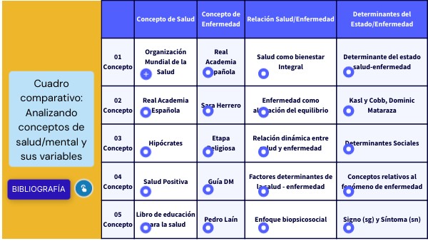 Cuadro comparativo: Analizando conceptos de salud/mental y sus variables