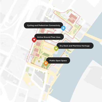 The historic dry docks are retained as the centrepiece of the masterplan, celebrating Belfast’s maritime heritage through sensitive restoration and new public access. Their character and materials inspire the design of surrounding buildings and spaces, creating a strong sense of place rooted in the city’s history.