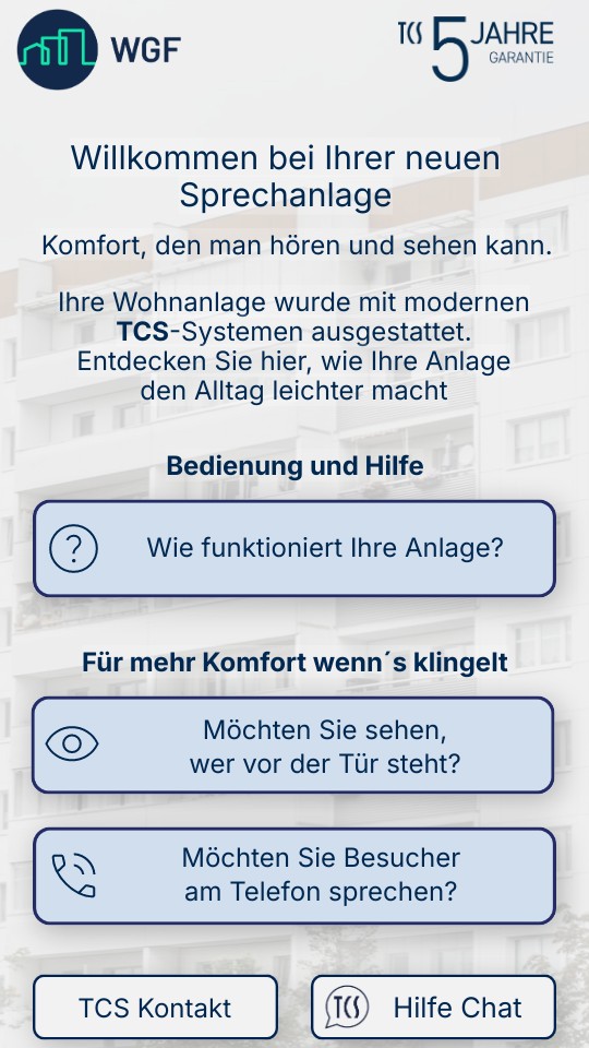 Ihre Wohnanlage wurde mit modernenTCS-Systemen ausgestattet.Entdecken Sie hier, wie Ihre Anlage den Alltag leichter macht