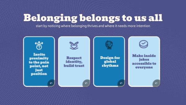start by noticing where belonging thrives and where it needs more intention