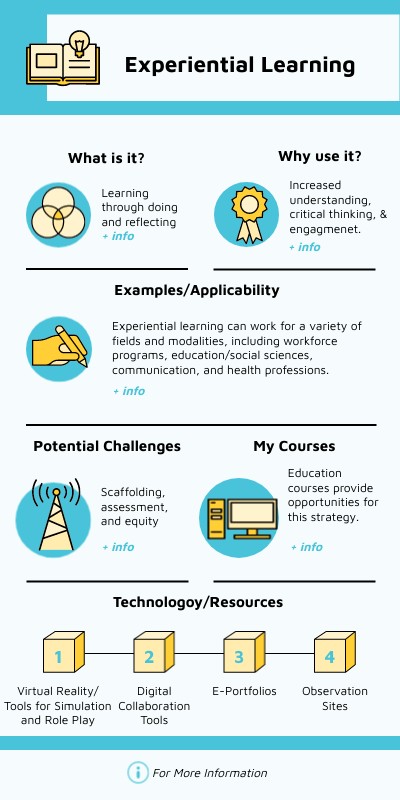 Experiential learning can work for a variety of fields and modalities, including workforce programs, education/social sciences, communication, and health professions.
