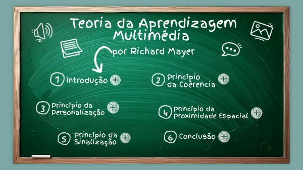 A Teoria da Aprendizagem Multimédia tem como objetivo simplificar e melhorar a eficácia da aprendizagem, utilizando imagens e palavras narradas OU escritas de forma a reduzir a sobrecarga cognitiva do indivíduo.