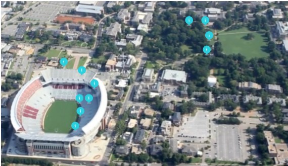 Bryant-Denny Stadium and Quad temp readings