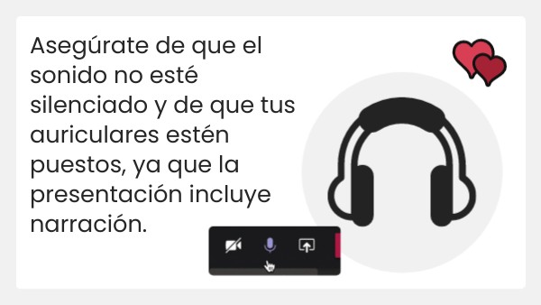 Asegúrate de que el sonido no esté silenciado y de que tus auriculares estén puestos, ya que la presentación incluye narración.