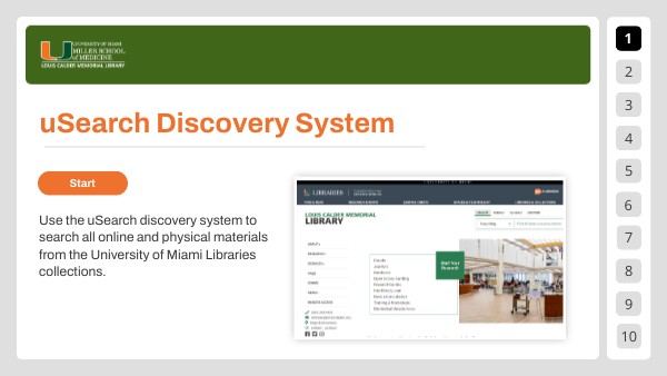 Use the uSearch discovery system to search all online and physical materials from the University of Miami Libraries collections.