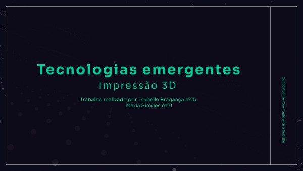 uma tecnologia revolucionária que permite a criação de objetos tridimensionais a partir de um modelo digital. Consiste num processo de fabricação aditiva, em que sucessivas camadas de material são depositadas sobre uma plataforma para formar o objeto final.