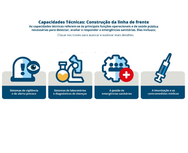 Sistemas de laboratórios e diagnósticos de doenças auxiliam na detecção, confirmação e caracterização oportunas de patógenos propensos a provocar epidemias e outros riscos biológicos. Essa capacidade garante uma rede de laboratórios funcional, nacional e multissetorial, com protocolos padronizados para a coleta de amostras, transporte seguro, controle de qualidade e verificação diagnóstica. Sistemas eficazes possibilitam a identificação precisa e rápida de ameaças mediante o acesso ampliado a ferramentas e tecnologias de diagnóstico confiáveis, seguras e adequadas ao contexto.