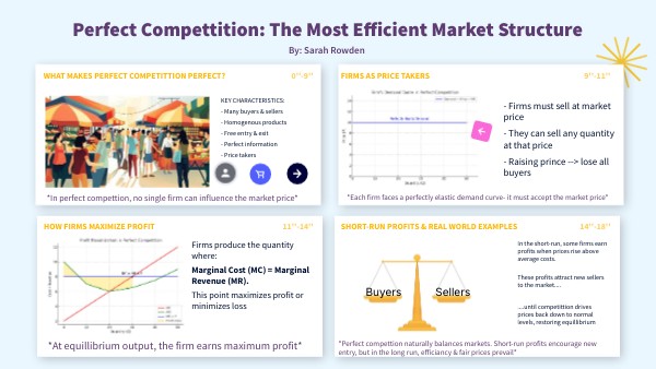 *Perfect compettion naturally balances markets. Short-run profits encourage new entry, but in the long run, efficiancy & fair prices prevail*