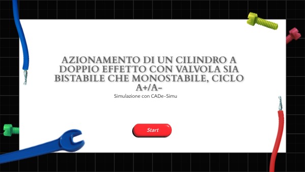 Azionamento di un cilindro a doppio effetto con valvola sia bistabile che monostabile, ciclo a+/a-