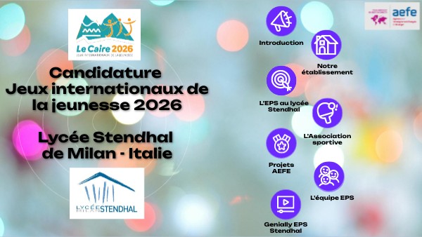 Candidature Jeux internationaux de la jeunesse 2026 Lycée Stendhal de Milan - Italie