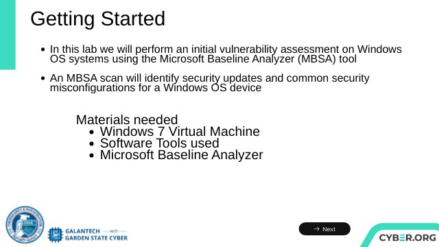 - In this lab we will perform an initial vulnerability assessment on Windows OS systems using the Microsoft Baseline Analyzer (MBSA) tool