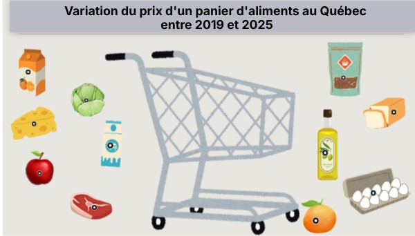 Variation du prix d'un panier d'aliments au Québec entre 2019 et 2025