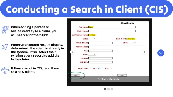 When your search results display, determine if the client is already in the system. If so, select their existing client record to add them to the claim.