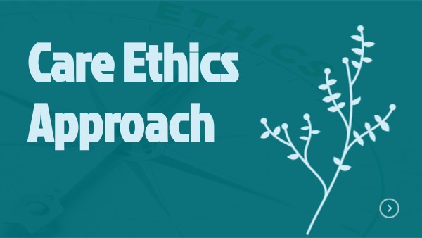 Emphasizes relationships, empathy, and responsibility for others' well-being over principles like justice or rights Decisions should focus on meeting the specific needs of vulnerable individuals rather than applying universal, one-size-fits-all rules