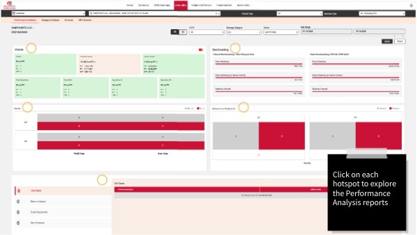 Cut Cases: Products that have been cut by the warehouse Return Analysis: Products that have been returned from the customer by reason code Outlet Equipment: Equipment that is assigned to that specific outlet in the system New Products: Products introduced to that customer in the last 90 days