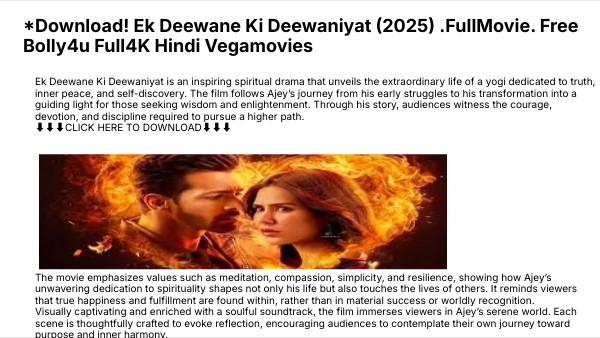 Ek Deewane Ki Deewaniyat is an inspiring spiritual drama that unveils the extraordinary life of a yogi dedicated to truth, inner peace, and self-discovery. The film follows Ajey’s journey from his early struggles to his transformation into a guiding light for those seeking wisdom and enlightenment. Through his story, audiences witness the courage, devotion, and discipline required to pursue a higher path. ⬇️⬇️⬇️CLICK HERE TO DOWNLOAD⬇️⬇️⬇️ The movie emphasizes values such as meditation, compassion, simplicity, and resilience, showing how Ajey’s unwavering dedication to spirituality shapes not only his life but also touches the lives of others. It reminds viewers that true happiness and fulfillment are found within, rather than in material success or worldly recognition. Visually captivating and enriched with a soulful soundtrack, the film immerses viewers in Ajey’s serene world. Each scene is thoughtfully crafted to evoke reflection, encouraging audiences to contemplate their own journey toward purpose and inner harmony. More than a biopic, Ek Deewane Ki Deewaniyat is a cinematic exploration of the soul. It inspires viewers to embrace faith, patience, and self-discipline, guiding them toward their own path of enlightenment and lasting inner peace.