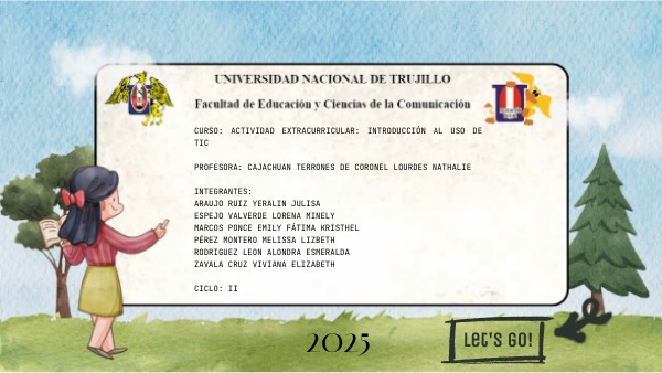 CURSO: ACTIVIDAD EXTRACURRICULAR: INTRODUCCIÓN AL USO DE TIC PROFESORA: CAJACHUAN TERRONES DE CORONEL LOURDES NATHALIE INTEGRANTES:ARAUJO RUIZ YERALIN JULISAESPEJO VALVERDE LORENA MINELYMARCOS PONCE EMILY FÁTIMA KRISTHELPÉREZ MONTERO MELISSA LIZBETHRODRIGUEZ LEON ALONDRA ESMERALDAZAVALA CRUZ VIVIANA ELIZABETHCICLO: II