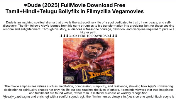 Dude is an inspiring spiritual drama that unveils the extraordinary life of a yogi dedicated to truth, inner peace, and self-discovery. The film follows Ajey’s journey from his early struggles to his transformation into a guiding light for those seeking wisdom and enlightenment. Through his story, audiences witness the courage, devotion, and discipline required to pursue a higher path. ⬇️⬇️⬇️CLICK HERE TO DOWNLOAD⬇️⬇️⬇️ The movie emphasizes values such as meditation, compassion, simplicity, and resilience, showing how Ajey’s unwavering dedication to spirituality shapes not only his life but also touches the lives of others. It reminds viewers that true happiness and fulfillment are found within, rather than in material success or worldly recognition. Visually captivating and enriched with a soulful soundtrack, the film immerses viewers in Ajey’s serene world. Each scene is thoughtfully crafted to evoke reflection, encouraging audiences to contemplate their own journey toward purpose and inner harmony. More than a biopic, Dude is a cinematic exploration of the soul. It inspires viewers to embrace faith, patience, and self-discipline, guiding them toward their own path of enlightenment and lasting inner peace.