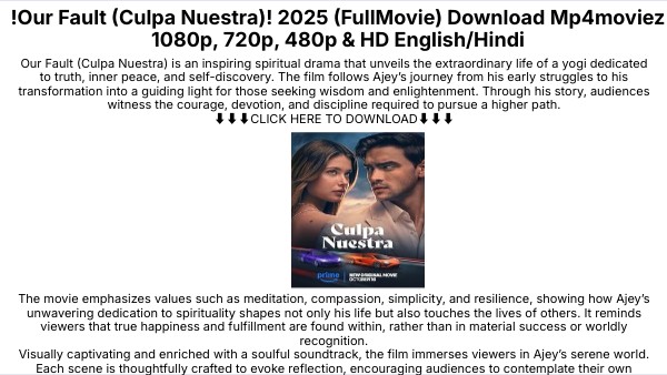 Our Fault (Culpa Nuestra) is an inspiring spiritual drama that unveils the extraordinary life of a yogi dedicated to truth, inner peace, and self-discovery. The film follows Ajey’s journey from his early struggles to his transformation into a guiding light for those seeking wisdom and enlightenment. Through his story, audiences witness the courage, devotion, and discipline required to pursue a higher path. ⬇️⬇️⬇️CLICK HERE TO DOWNLOAD⬇️⬇️⬇️ The movie emphasizes values such as meditation, compassion, simplicity, and resilience, showing how Ajey’s unwavering dedication to spirituality shapes not only his life but also touches the lives of others. It reminds viewers that true happiness and fulfillment are found within, rather than in material success or worldly recognition. Visually captivating and enriched with a soulful soundtrack, the film immerses viewers in Ajey’s serene world. Each scene is thoughtfully crafted to evoke reflection, encouraging audiences to contemplate their own journey toward purpose and inner harmony. More than a biopic, Our Fault (Culpa Nuestra) is a cinematic exploration of the soul. It inspires viewers to embrace faith, patience, and self-discipline, guiding them toward their own path of enlightenment and lasting inner peace.